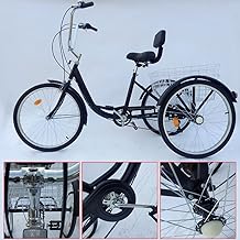 SENDERPICK 24' 6 Speed Adult 3 Wheel Tricycle, Adult Bicycle Cycling Pedal Bike with White Basket for Outdoor Sports Shopping Adjustable (Black)