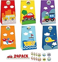 24パック 交通 グッディ キャンディ お菓子バッグ 交通 パーティー ギフト バッグ サンキューステッカー 子供用 車 バス 電車 飛行機 船 誕生日 パーティー デコレーション ベビーシャワー用品