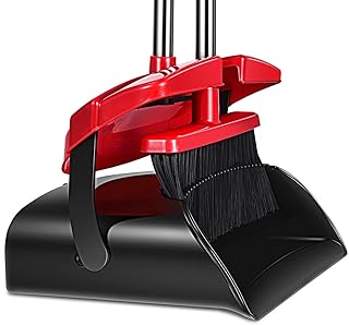 Solucet ロングハンドル ほうき&ちりとりセット 直立型 ちりとり& 超長い持ち手付きほうき 丈夫な毛付き 自宅の床の掃除用 (ブラック/オレンジ)