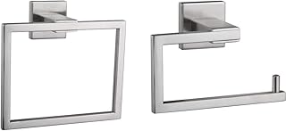 BATHSIR バスルームハードウェアセット つや消しニッケル トイレットペーパーホルダー&タオルリング シルバー バスルームアクセサリー 2ピース タオルホルダーキット ステンレススチール 壁取り付け