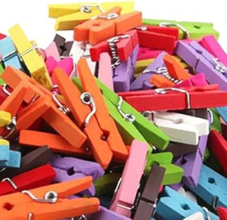 木製クリップ 木製ピンチ 約100枚入 洗濯バサミ 写真用 多機能 ミニ 混色 耐久性 使いやすい