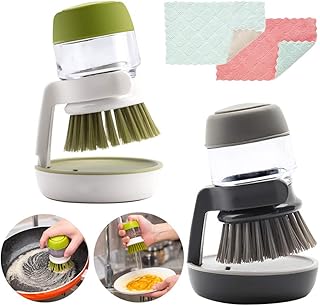 GNAWRISHING ソープディスペンサー パームブラシ 2パック ディッシュスクラブブラシ スタンド付き キッチンブラシ 皿 鍋 鍋 シンク クリーニング (グレー&グリーン)