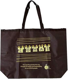 オリタニ ランドリーバック 大 不織布 ホック付 大容量 クリーニング用エコバッグ 折りたたみ (Tシャツ柄ブラウン)