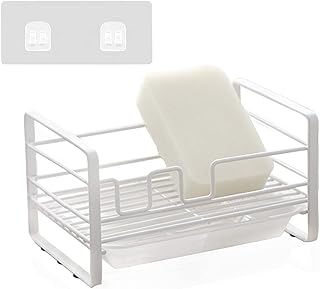 スポンジ置き キッチン ステンレス スポンジラック スポンジホルダー 調整可能なスペースサイズパネル、防錆、シンク収納、スタイリッシュ・シンプリシティ(ホワイト)