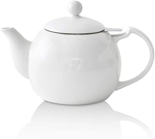 KOOV セラミックティーポット 茶こし付き 茶葉用 34オンス セラミックティーポット テラ 6カップ ティーパーティー ハイティーシリーズ (ホワイト)