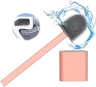 スノーキーチェーン シリコンノンスリップ トイレブラシ 革命的なフレックストイレブラシ クイックドライトイレブラシセット ホルダー付き 床置きトイレブラシ トイレの角をきれいに ピンク