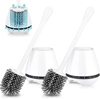 TRENTI トイレブラシ ホルダー付き 2個パック シリコントイレブラシセット 通気ホルダーと長い人間工学ハンドル 柔軟なシリコントイレブラシ バスルームの掃除に