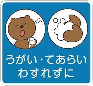 Biijo うがい 手洗い ウイルス対策 くま ステッカー 感染症予防 シール (B. 四角小 100mm x 93mm)