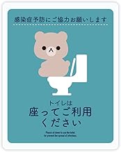 Biijo クマ トイレ 感染症予防 ウイルス対策 ふたを閉めて ステッカー シール 居酒屋 レストラン 病院 (座って下さい/ブルー, Sサイズ:タテ120mm×ヨコ150mm)
