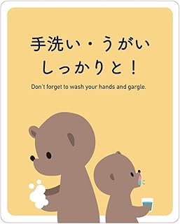 Biijo うがい手洗い ステッカー クマ 消毒 換気 感染症予防 スーパー 飲食店 シール (黄色, Sサイズ/タテ150mm×ヨコ120mm)