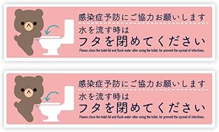 Biijo クマ トイレ 感染症予防 ウイルス対策 ふたを閉めて ステッカー シール 居酒屋 レストラン 病院 (フタを閉めて下さい/ピンク, 2枚組:タテ38mm×ヨコ140mm(2枚1組))