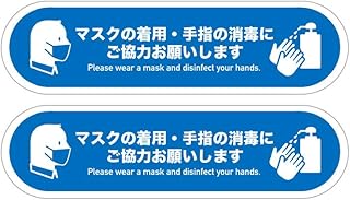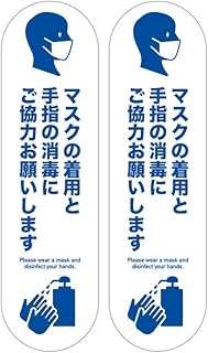 マスクの着用・手指の消毒 注意喚起 シール サインステッカー [耐候・防水 日本製] スーパー,飲食店,ウイルス対策 (2枚セット)
