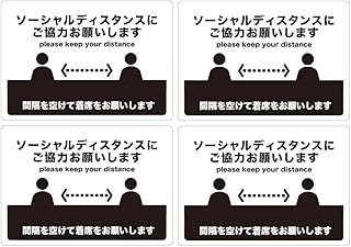 Biijo ソーシャルディスタンスステッカー 座席用 飲食店 感染防止 シール (2ヶ国語(日・英語), タテ6.3cm×ヨコ9cm(4枚セット))