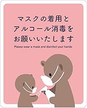 Biijo マスクの着用 手指の消毒 お願い クマの親子 スーパー 飲食店 ウイルス対策 感染予防 ステッカー シール (ピンク, 小サイズ/タテ150mm×ヨコ120mm)