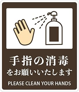 Biijo 手指の消毒 お願い スーパー 飲食店 ウイルス対策 ステッカー ([ブラウン]2ヶ国語 140x164mm)