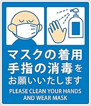 Biijo 手指消毒 ウイルス対策 感染予防 お願い ステッカー スーパー 飲食店 シール (青, Sサイズ/タテ100mm×ヨコ98mm)