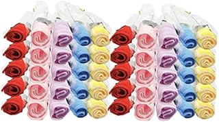 【Amazon 限定ブランド】 BYM バラ型 ミニタオル プチギフト 粗品 お返し 退職 プレゼント ロース ハンカチ リボン ラッピング 袋入り 【多色セット】