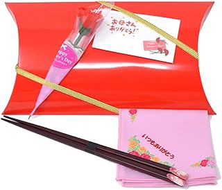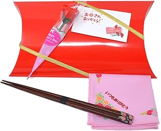 母の日 母 ギフト セット にっこり笑顔になる バラ はし と ピンク ハンカチ プレゼント 母の日 カーネーション 箸 ラッピング付